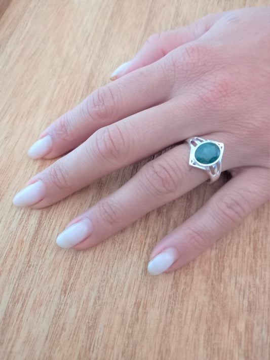 Sterling Silver Gemstone Rings - Emerald Rava Sterling Silver Ring